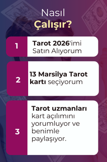 Siparişinizin ardından, bu ürüne katkıda bulunacak olan tarot yorumcularımız size özel 13 kartlık bir açılım yapacak. 2026 yılının her ayı için bir kart, ve genel enerjinizi ortaya koyacak bir özet kartı. MyWengo hesabınız üzerinden ürüne her zaman ulaşabileceksiniz.
